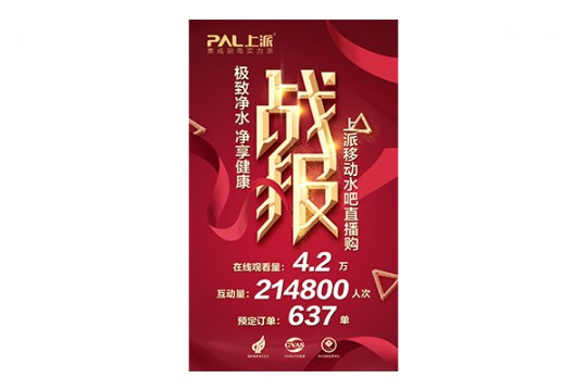 引爆直播 ,上派移动水吧净水器订单成交600余单互动破20万